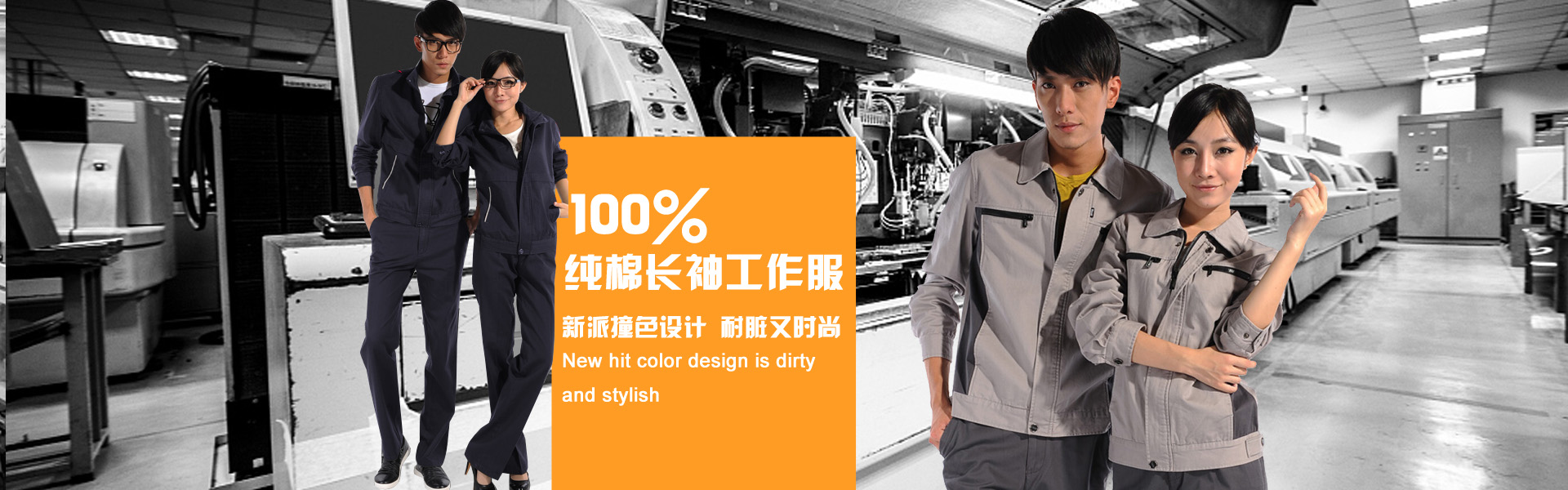 淺駝鐵灰插色長袖純棉工作服